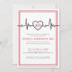 This heartbeat-themed graduation invitation features a bold mix of black and red, with a striking red double line frame and a red background, adding a modern yet timeless touch. The classic serif fonts and clean, modern typography perfectly complement the EKG heart line, making it an ideal way to celebrate a medical or nursing school graduate. While the current design features black and red, all colours—including the heartbeat line and background—can be customized to match school colours or the graduate’s favourite shades.