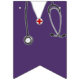 Unique doctor party decoration featuring purple hospital scrubs and stripes.