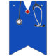 Unique medical school celebration decoration or doctor party bunting featuring royal blue hospital scrubs, stethoscope and stripes.