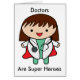 Doctors are hard workers! Let the female doctor in your life know how much they're appreciated with this doctor's day card that has a girl doctor wearing a doctor's outfit complete with stethoscope and red cape! The text on the cover says, "Doctors Are Super Heroes", but can be changed and personalized to fit your needs! The inside greeting card text can also be customized and changed to fit your needs!
