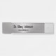 This faux silver office door sign has a brushed metal look. (The silver look is artwork, not foil.) There are two lines of black display text that you can edit to show the doctor's name and specialty or professional title.