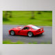 Dodge Viper speeding through the countryside. This big Horsepower V10 muscle car looks magnificent in red with the white speed stripes.