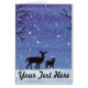 A tiny watercolor landscape of a White Tail Doe and fawn silhouetted against a starry, night sky.