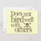This funny text design reads "Does Not Bird Well With Others" and includes an image of a skull and crossbones. If you'd rather avoid big birding groups and get out into the field on your own, this is for you! A cute gift idea for notorious lone-birders.