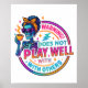 Vibrant, colourful design featuring a female skeleton sipping coffee. The colourful text reads: "Warning does not play well with others". This design is available on a wide variety of products.