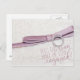 Adorable wedding PostCard with a photography of a beautiful diamond on white lace with pink ribbon and quote: " Does this ring make me look engaged?'" This is the best and Number 1 Design for your speacial day.