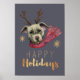 Dog Antlers Christmas Funny Watercolor Art Poster