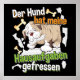 Funny - My Dog Ate My Homework quote - Der Hund hat meine Hausaufgaben gefressen. Bring a smile to a teacher, ESL instructor, tutor or study abroad volunteer learning German. > A cute bulldog with torn papers makes it fun for students to learn to speak the German language. > Personalize it! Add custom name, photo, or text.