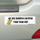 My dog behaves better than your kid! Funny dog lover bumper sticker with a cartoon of a brown dog.
