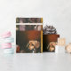 This wrapping paper is illustrated with a selection of dog breeds dressed in historical clothing.