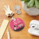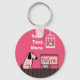 Cute keyring for pet sitters. A dog and cat are looking at a fish in an aquarium. A bird is in a birdcage above. Pinkish red background. Add your text or delete the sample.