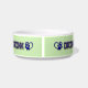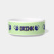 Serve your pet in style with this pet ceramic water bowl. It features some blue paw print hearts and the word "Drink" in navy blue colour, against a sage green background. It's not only stylish but microwave and dishwasher safe too.