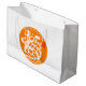 Customizable large gift bag in white with white traditional Chinese papercut of Dog and white lettering on orange large round shape. You can easily change background colour and text (font, colour, size and position) by clicking the customize button. Matching greeting card, postcard and sticker. Perfect for Chinese New Year of the Dog 2018 or birthday (people born in Dog Year). ----- "The Dog (狗) is one of the 12-year cycle of animals which appear in the Chinese zodiac related to the Chinese calendar. The Year of the Dog is associated with the Earthly Branch symbol 戌. The character 狗 refers to the actual animal while 戌 refers to the zodiac animal. (...) People born within these date ranges can be said to have been born in the "Year of the Dog", while also bearing the following elemental sign: