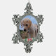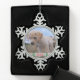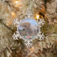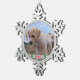 Pewter dog Christmas ornaments in a shape of snowflake with your custom photo and text - you can add your dog's photo and name. It measures 3 inches by 3 inches and weights 1.5 ounces. You can find similar design with personalized photo and text on other ornaments too - ceramic, metal premium square or on ceramic ball ornament.