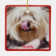 Dog Christmas ornaments (square ceramic ornament) with customizable text and photo - you can add your dog's photo and name. It measures 2 inches by 2 inches and weights 1.5 ounces. You can find similar design with personalized photo and text on other ornaments too - ceramic, pewter snowflake or on ceramic ball ornament.