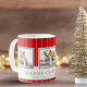 Stylish and modern dog Christmas holiday photo mug with 3 photo collage, Merry Christmas and a custom text. Add three photo. Personalize the text any way you wish or delete it. The background features a red background with white stripes. Great as a Christmas gift or a keepsake mug for yourself.