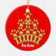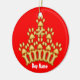 This ornament features an original illustration of a golden crown made of dog bones and paw prints, on a red background on one side, and blue on the other - perfect for including your best friend in the holiday decorations. Personalize it with your dog's name, and change the background colours if you like, to honour your doggie on the Christmas tree or anywhere, anytime to mark his/her spot.