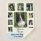 Perfect for celebrating your favourite dog or memorializing your special pooch, this sherpa blanket features 10 custom photos plus your dog's name and more text. Use the easy templates to personalize. Add your pictures and change text lines 1 and 2. The text at the bottom currently says, "Dogs leave paw prints on our hearts." You can keep it or "customize further" to make detailed changes. The colour of the blue bar can also be changed. Choose from small, medium, or large blanket sizes (small is shown). Look no further than this personalized sherpa blanket for the dog lover on your gift list.