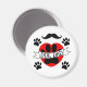 A dog paw print in a red heart with text on a ribbon. Original design with paws and a moustache. A gift idea for men.