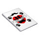 A dog paw print in a red heart with text on a ribbon. Original design with paws and a moustache. A gift idea for men.