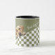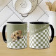Celebrate your bond with your loyal companion with this stylish "Dog Dad Sage Olive Yellow Labrador" mug. Crafted with a unique blend of modern and playful elements, this mug combines a trendy sage and olive chequerboard pattern with an adorable, lifelike illustration of a black Labrador peeking over the edge. The mug is fully customizable, allowing you to add your name or a personal message, making it an ideal choice for dog dads looking to add a bit of personal flair to their morning coffee routine. Designed by Anna Szalacha, Happy Ann Designs 2024.