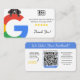 This is a clean minimalist google review business card for Doggie daycares, veterinarians or pet sitters or anyone that has a google business profile and works with canines. On the front side of the card you have the iconic Google G logo with a cute border collie peeking over it. positioned in the bottom left of the card. This logo can be moved to your liking! You also have your logo, a personalized message or call to action to leave you a review on Google. You have an image depicting 5 stars which serves as a cue to let your customers know that a 5 star review is expected. Of course you must deliver on your product quality and service for this to happen. Lastly, there is a thank you message at the bottom. On the back side of the card you have a personal message at the top, simple instructions on what to do, your QR code in the centre and your business information to the right of the code. This card is 100% customizable, you can change the images, the text, the fonts and the colours. You could also just plug in your info and add your logo images and run with it. If you need any help with this template please send me a message and I will gladly assist you. Thanks! Sandy