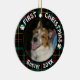 Dog First Christmas 2-Photo 2-Sided Plaid Ceramic Ornament