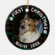 Commemorate a puppy's or dog's First Christmas with two photos on the double-sided keepsake ornament shown featuring a multi-coloured black plaid background and a place to add your personalized text on the front. The back side features a full-bleed photo. (PHOTO TIP: For fastest/best results, choose a photo with the subject in the middle and/or pre-crop your image to a square shape BEFORE uploading it and it will fill in the photo space provided perfectly.) The text font style, size and colour can be changed by clicking on the "Click to customize further" tab. OTHER STYLES: Note that other ornament styles to choose from on the ordering page may not offer back side printing. Contact the designer if you'd like this design on another item.
