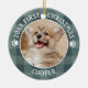 Commemorate a First Christmas for a puppy or dog with a personalized photo keepsake ornament with their picture, name and year accented with dog pawprints and green buffalo check plaid flannel. The sample is shown on a round ceramic style ornament--other styles are available on the ordering page or the design can be transferred to other ornament styles. ASSISTANCE: For help with design modification, personalization, colour change or transfer, contact the designer BEFORE ORDERING via the Zazzle Chat MESSAGE tab below or email makeitaboutyoustore@gmail.com.