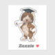 Celebrate the academic achievements of your favourite graduate with our adorable graduation dog sticker. This charming design features an enthusiastic pup donning a graduation cap and holding a diploma in its mouth, ready to embark on its next adventure.