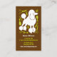 A dog grooming business card with an illustration of a groomed poodle surrounded by a dog groomer's tools.