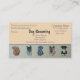Dog grooming, dog walking, pet sitting, vet care, animal grooming, all these services and other pet care services are covered by this original business card. On the front of the customizable pet care card you'll see five small original paintings of two akita dogs, a black red labrador, a black labrador and cute pug with a red collor. The text on this original dog grooming business card is customizable for you to add all your own business details. On the back to this unique business card is more customizable space for you to enter apponitments and other information for your customers if you wish to.