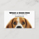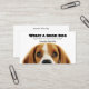 Un beagle tout à fait adorable surplombe le bord inférieur de ce carte de visite pour une variété d'activités liées au chien : dressage de chiens, arraisonnement, toilettage, promenade de chiens, garde de chiens, garde d'enfants pour chiens, soins vétérinaires, etc. Si votre entreprise implique des chiens, voici la carte pour vous!
