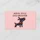Dog business cards with colourful fun design that includes a polka dot dog and text layout you can customize now. Best business cards for a dog groomer, dog sitter, walking service, or obedience training.