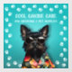 A cute black miniature schnauzer on bright turquoise with a white paw print border, this dog grooming business window decal - in lots of custom sizes - is a fun way to display your business information.