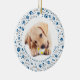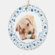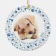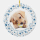 Decorate your tree or give a special gift this holiday season with this elegant pet photo design christmas ornament, and matching decor. This dog christmas ornament features a festive blue and grey paw prints and bones pattern. Personalize with name front and year . This pet christmas ornament will be a favourite among pet lovers, dog lovers, and animal lovers. Visit our collection for matching pet photo christmas cards, home decor, and gifts. COPYRIGHT © 2020 Judy Burrows, Black Dog Art - All Rights Reserved. Dog Holiday Paw Prints Personalized 2 Pet Photo Ceramic Ornament