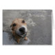 Super cute pooch looking up at its owner.