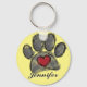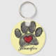 Dog paw print and heart watercolor in red, black and grey. Custom key chains for men and women. Yellow background version. Edit name to personalize. Gift idea for dog lovers.
