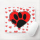 Red heart, dog paw print drawings. Hearts all-over background. Gift idea for dog lovers.