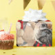 A great looking French Bulldog in a green winter scarf and hat is patterned on this dog lover gift wrap for the holiday season or any gift-giving occasion.