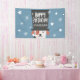 Cute birthday backdrop banner for your child's magic theme birthday party. There is an illustration of a dog with black hat, wand, and moustache. Inside the hat there are texts that ways "Happy Birthday Jonathan" Add your child's name on this banner and use it for his next magical birthday party!