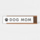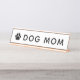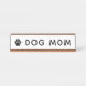 A fun Dog Mom desk name plate featuring bold modern typography with a paw print accent on a clean white background. All text and colors are fully editable — change Dog Mom to Cat Mom or any pet title. A playful Mother's Day, birthday, or just-because gift for the pet lover at the office.
