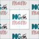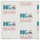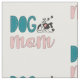 Lovely modern fabric featuring an adorable sleeping spotted dog with the wording "Dog mom" in teal and pink fonts