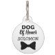 This cute dog wedding id tag makes the perfect accessory for your puppy on your wedding day! It features a lovely black bowtie with the caption "Dog of Honour", and it's easily customizable by editing the template fields with your pet's name on the front and with your wedding date on the back.