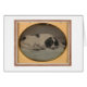 The Bancroft Library Presents: Full length portrait of a dog, laying on a flower print cloth. Portrait by Sheldon Nichols (casemaker) between 1852 and 1853.