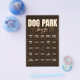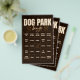 A playful, earth-toned bingo card design featuring 25 common dog behaviors like "Zoomies" and "Wagging Tail." The graphic uses a mix of bold block lettering and elegant script, accented by bone icons and a minimalist dog silhouette.