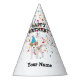 A cute illustration of a dog partying and having fun! Puppy wearing a party hat and blowing party horn with confetti raining down on it. Let the celebrations begin! Perfect for anyone who loves funny animal illustrations. Ideal birthday party hat, customize the name and make it your own. Matching birthday invitations and decor can be viewed in this design's collection.