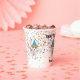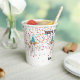 A cute illustration of a dog partying and having fun! Puppy wearing a party hat and blowing party horn with confetti raining down on it. Let the celebrations begin! Perfect for anyone who loves funny animal illustrations. Ideal birthday party paper cup, customize the name and make it your own. Matching birthday invitations and decor can be viewed in this design's collection.