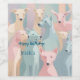 This image is a pastel-toned abstract illustration of a group of dogs in various shades of soft pink, blue, beige, and green. The composition features elegant, stylized depictions of canines, each with minimalistic yet expressive details. The background complements the figures with soft gradients and overlapping shapes, creating a dreamy and artistic atmosphere. The overall aesthetic conveys calmness, unity, and a modern, artistic vibe.