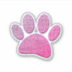 Cute cartoon style dog paw print with burlap texture. Custom vinyl decals. Pink colour version.